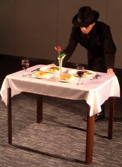 テーブルクロス引き&戻し、ハットジャグリング指導 小堺、松尾伴内、川本成・堀口文宏(あさりど) |